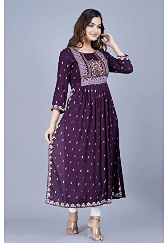 An amazing range of women’s ethnic wear in soft and solid colors that looks perfect for regular wear. With beautiful designs and patterns. These apparels are very stylish and comfortable too. Get rid of the ‘regular’ look this festival wearing Anarkali Nayra cut Kurti Fabric Rayon and kurta is along with Round Neck & 3/4th Sleeves. Tailored from Rayon. Product Top Length: 48 Inches & Bottom Length : 39 Inches.