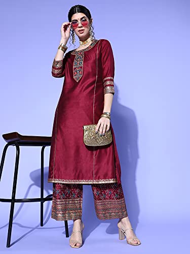 Women’s Rayon Liva Floral Liva Embroidered Straight Kurta Set.